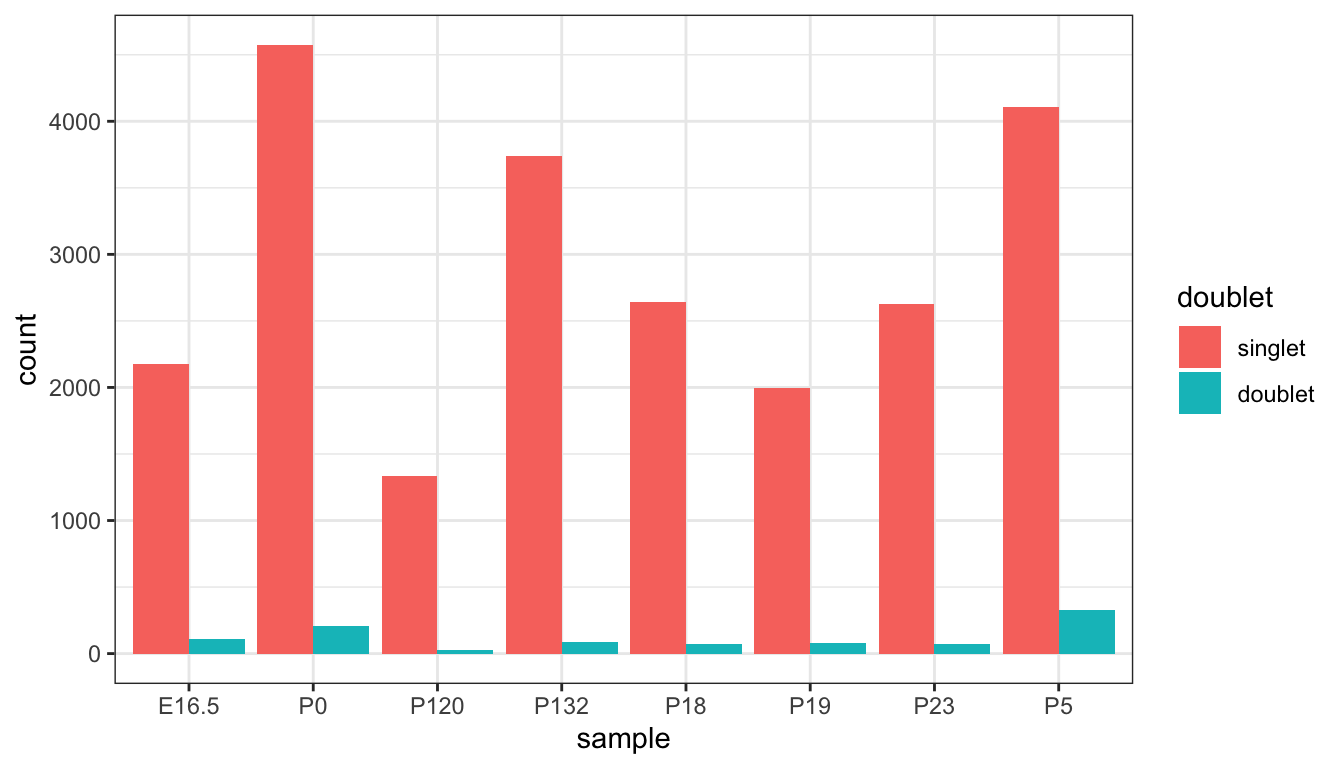 qc_plot <- data.frame(sample = sce$age, doublet = sce$scDblFinder.class)