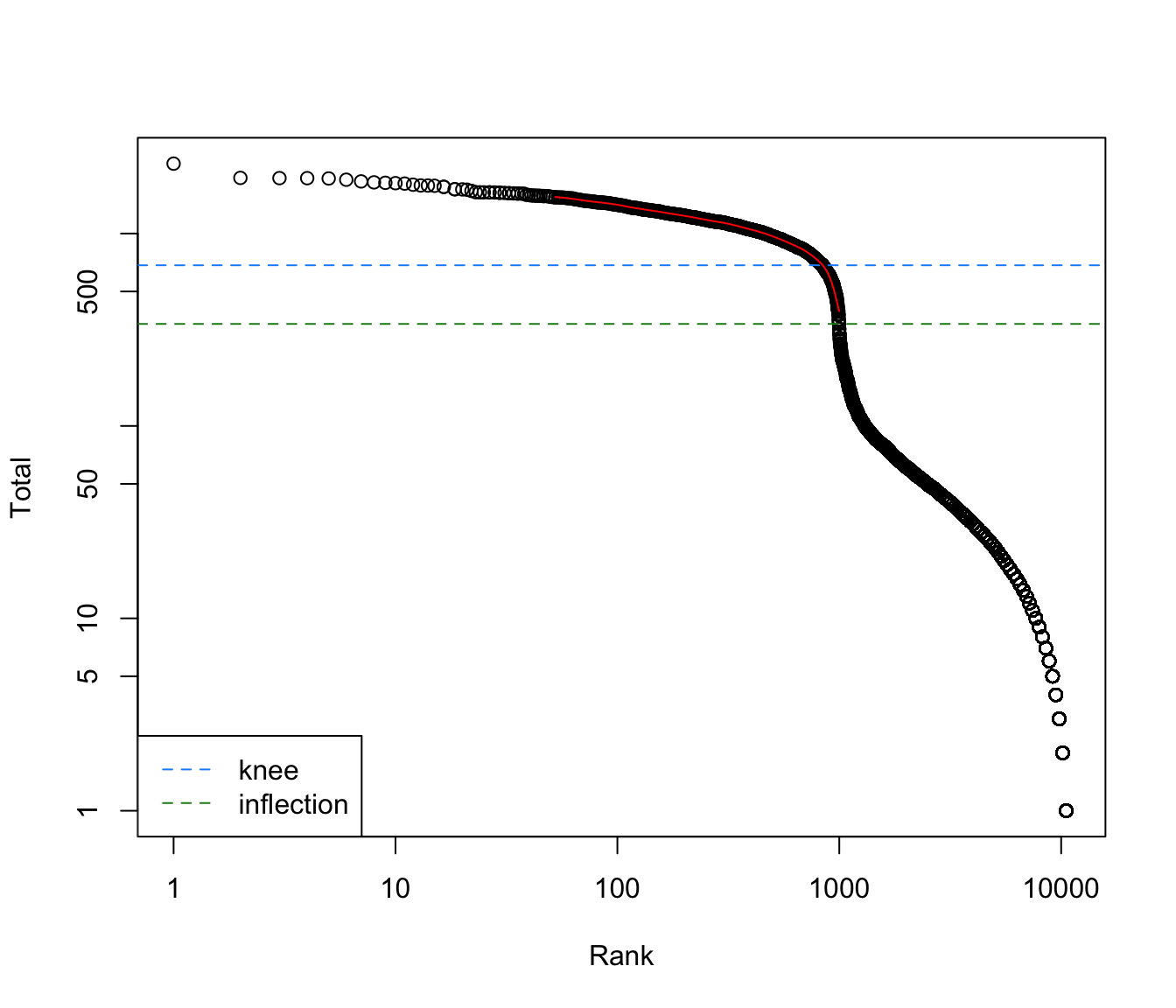 ranked barcodes have the lowest total UMI counts. It also shows the